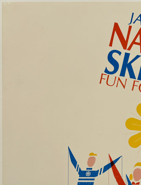 There is minor wear in the top left corner area; some excess printing ink in the bottom left corner area and left edge; this fun skiing poster should display wonderfully once framed.