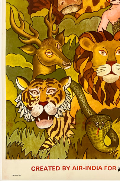 There is some offsetting in the bottom red text and some excess red ink in the bottom left corner and edge area; otherwise, this gorgeous Air India poster is in near mint condition and should display wonderfully once framed.