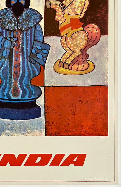 There are some surface smudges in the top left and bottom right white areas of the poster; otherwise this wonderful Air India travel poster is in near mint condition and should display beautifully once framed.