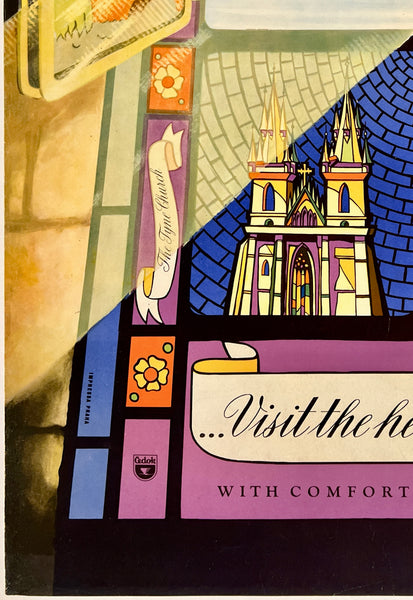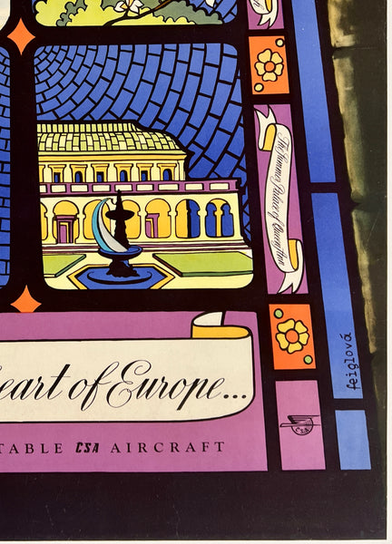 There is restored edge and corner wear, tears, creasing, crinkling, small losses; the damage is most noticeable along the vertical edges but the image area is clean is fresh; this wonderful airline travel poster should display very nicely once framed.