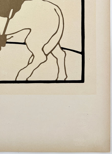 There is minor toning/time staining in the margins, most of which will be concealed by matting once the poster is framed; there are some smudges and accretions along the left edge where the plate was removed from its binding; this beautiful art nouveau poster should display wonderfully once framed.