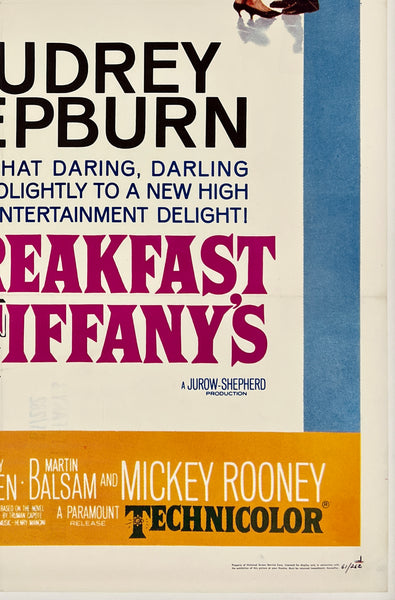 The poster was folded and there is some light toning along some areas of the fold lines and at the middle cross fold; restored corner tack holes; there is a clean diagonal tear in the upper right corner area between the top of the artwork and the printer's registration mark; there is an NSS ink stamp on the back of the poster that bleeds through to the front in and above the orange credits box near the middle of the poster; some surface smudges/abrasions in the margins; this iconic poster for one of the best movies of all time should display wonderfully once framed.