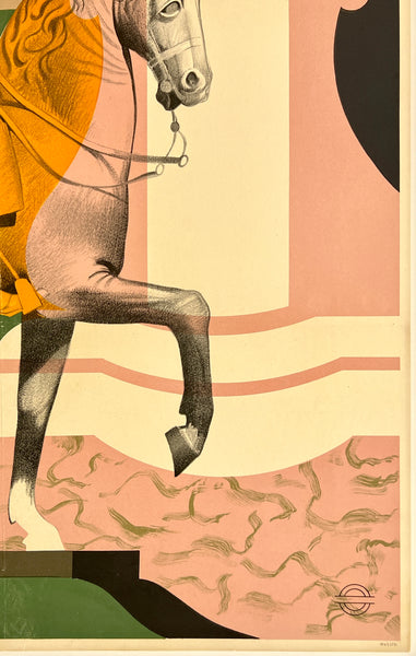 The poster was folded once vertically and twice horizontally; there is some fine surface paper loss along the fold lines and small loss at the cross-folds; some creasing along the vertical fold, most noticeable near the bottom of the poster, which appears to be a printing defect; some maring staining/toning; this gorgeous British poster should display very nicely once framed.