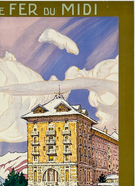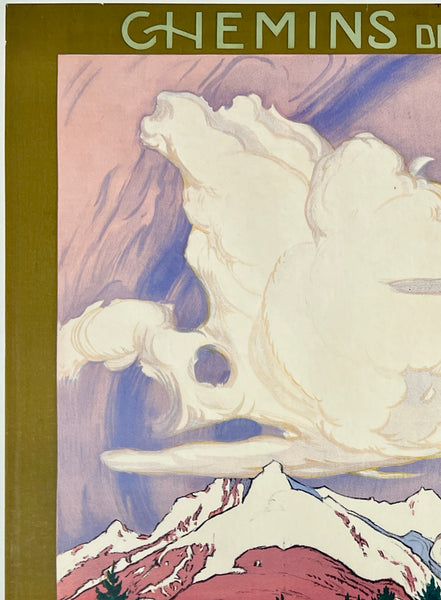 There is minor edge and corner wear and tiny tears; some surface scuffs/abrasions; some pinpoint foxing; colors remain bright and fresh more than 100 years since the poster was printed; this gorgeous French railroad travel poster should display wonderfully once framed.