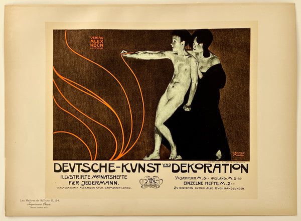 There is toning/time staining in the margins, most of which will be concealed by matting once the poster is framed; there are some smudges and accretions along the top edge where the plate was removed from its binding; this beautiful art nouveau poster should display wonderfully once framed.