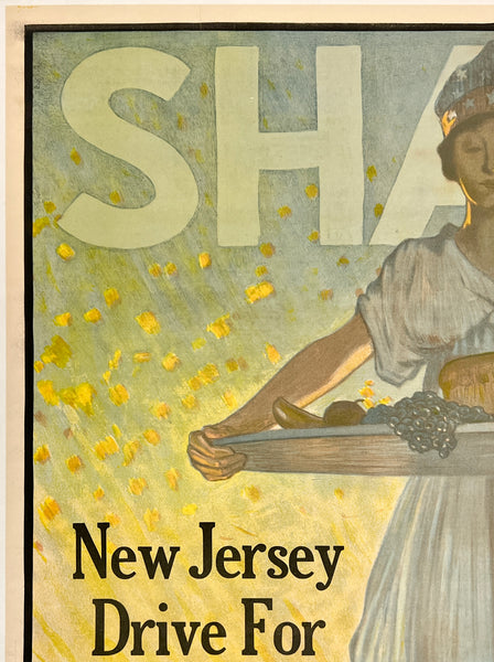 There are two 5" very well restored vertical tears at the bottom edge; there is a vertical line stretching the length of the poster, which appears to be a print defect between the "S" and "H" of "SHARE"; this very rare WWI propaganda poster should display beautifully once framed.