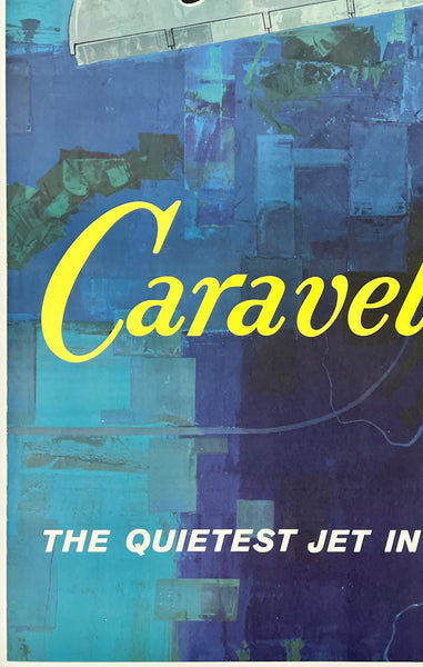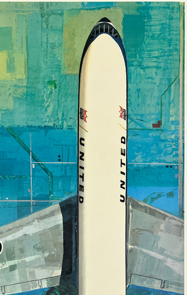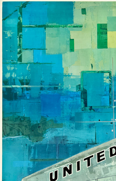 The poster is in near mint condition with just very minor edge and corner wear and tiny tears; this gorgeous midcentury airline travel poster should display beautifully once framed.