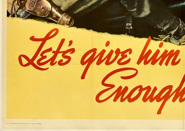 The poster was folded as issue and restoration has been performed to address fine surface paper loss along the fold lines and small losses at the cross folds; some surface smudges; some margin toning; some small tears in and near the bottom margin; this powerful American WWII production propaganda poster should display very nicely once framed.