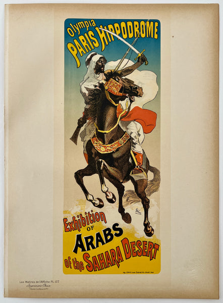 There is some yellowing/toning consistent with age, most noticeable in the outer edge areas; there are some smudges and accretions along the left edge where the plate was removed from its binding; this fabulous art nouveau poster should display beautifully once framed.