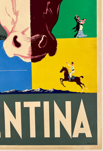 There is minor edge and corner wear, creasing, and light staining; some creasing/cracks in image, which is typical of silkscreen posters that have been previously handled; diagonal creasing in the upper and lower right corner areas; some light staining in image; some surface scratches/abrasions; notwithstanding its defects, this very rare airline travel poster featuring a DC-4 aircraft should display very nicely once framed.